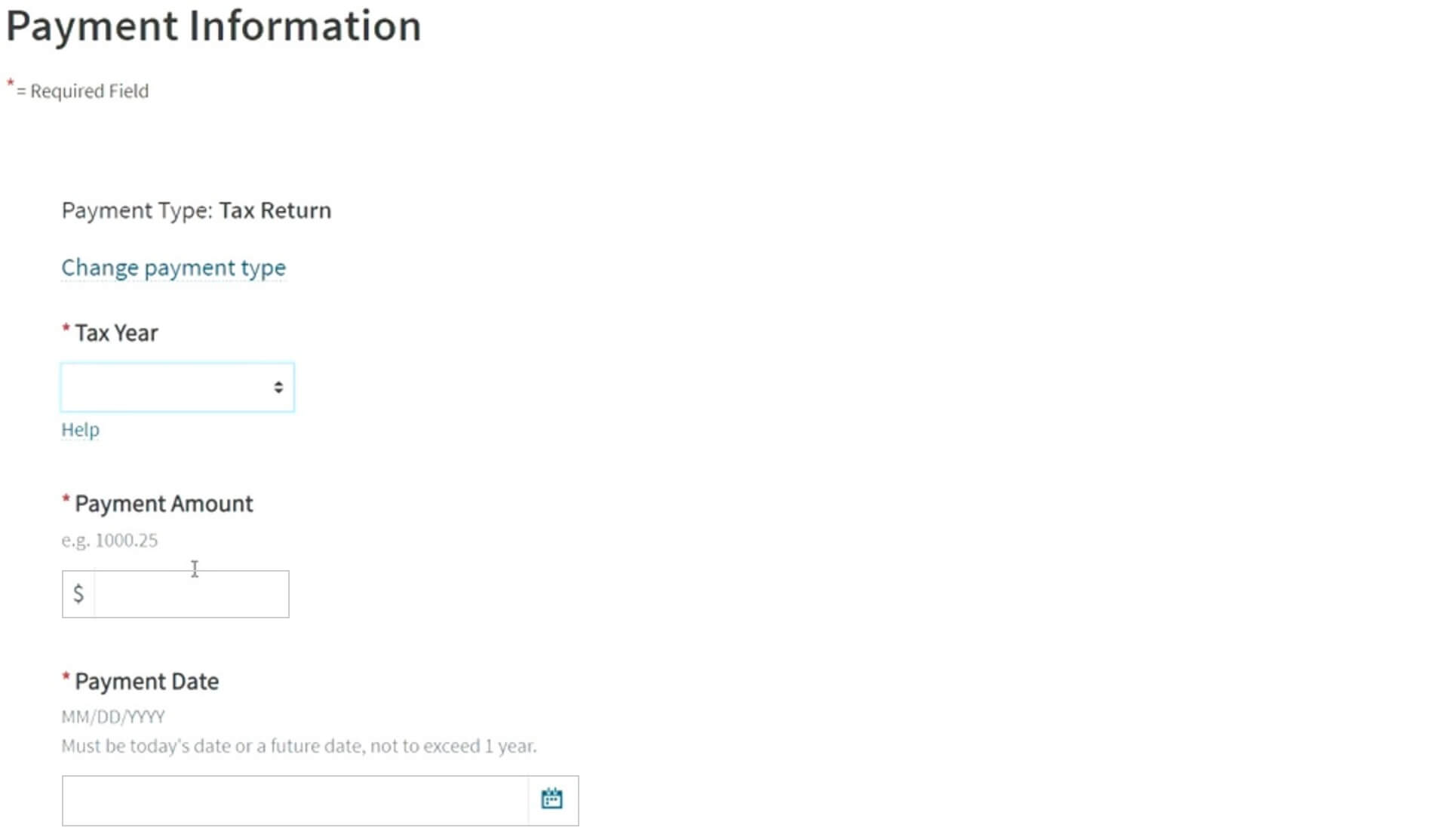 Select Tax Return Payment for the Payment Type.